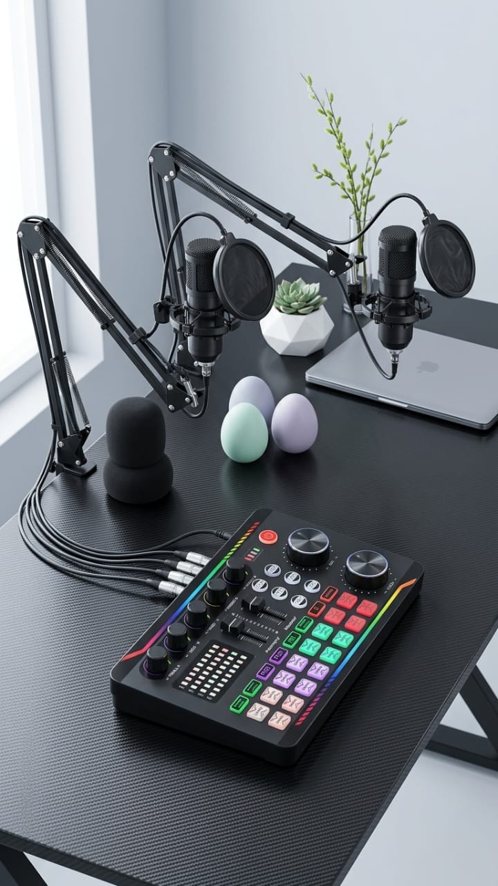Elevate your content creation with the ProCast Studio Bundle, a complete professional podcast and streaming setup designed for crystal-clear audio and seamless production. This all-in-one kit includes two high-quality condenser microphones with adjustable boom arms, pop filters, and foam windshields for noise-free recording. The package also features a multi-channel sound mixer/audio interface with illuminated controls, giving you precise command over audio levels, effects, and inputs. With both XLR and USB connectivity, it’s versatile enough for live streaming, podcasting, interviews, or studio recording. Easy desk clamp mounts ensure stability, while the included cables and accessories make setup quick and hassle-free. Perfect for creators, educators, musicians, and professionals who demand studio-grade sound without the complexity.